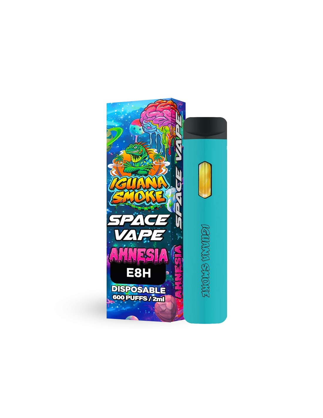 Este vaper desechable E8H Space Vape con perfil terpénico Amnesia es un dispositivo compacto y extremadamente sencillo de usar. Cuenta con una batería de larga duración y un depósito precargado  que garantiza de 300 a 600 caladas llenas de sabor según su capacidad. Su fórmula exclusiva incorpora E8H y terpenos naturales seleccionados para ofrecer un sabor herbal, cítrico y estimulante inspirado en la legendaria cepa Amnesia.